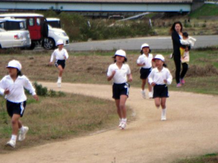 1年生女子、ゴールまでしっかり腕を振ってスピードを上げます。