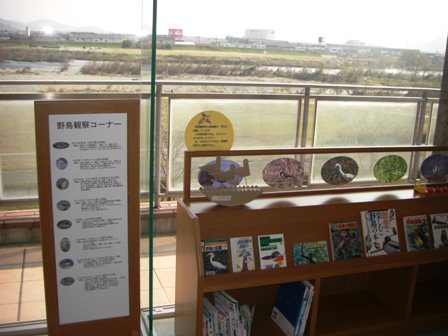 図書館の窓から揖保川がよく見えるので、野鳥の観察がしやすいようにコーナーが作ってありました。