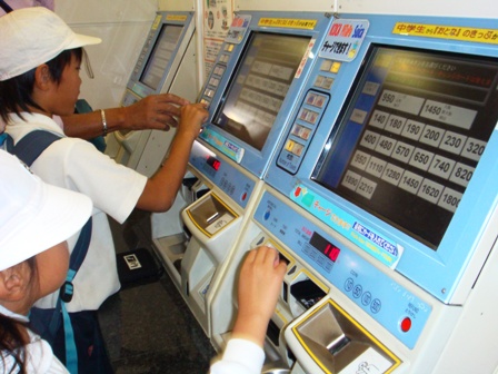 帰りは電車に乗ります。一人ずつ、券売機で切符を買いました。