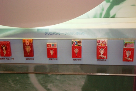 昔から今までのキャラメルの箱が並んでいました。おまけが変わってきていますね。