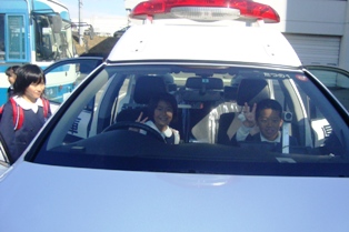 パトカーに乗せてもらいました。事故から私たちの安全を守ってくれていて、感謝です。
