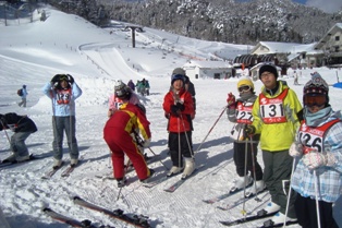 実際に雪の上でスキーを履いてみました。ストックを突いてないと滑りそうです。