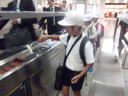 姫路駅で自動改札機を通ります。出てきた切符を取り忘れずに。