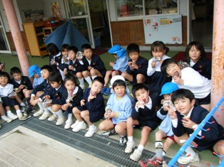 やきあがったおイモをほおばって、みんな満面の笑顔ですね。
