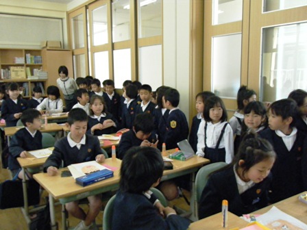 お兄さんやお姉さんの教室を見せてもらうと、一生懸命勉強していました。