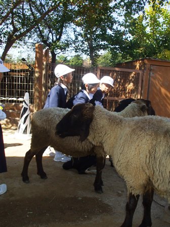 ヒツジや犬もみんなの所に寄ってきてくれます。いっぱいさわれてよかったです。