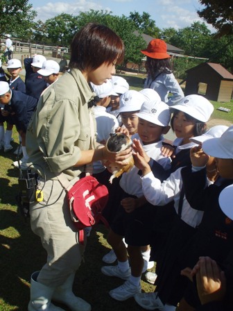 飼育員さんの抱いているウサギにもさわらせてもらいました。目がかわいかったです。