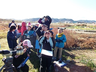 空を飛んでいる鳥も、双眼鏡で観察しました。