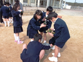 2年生で、ビオラやパンジーを植えました。まずは花がらをきれいに取ります。