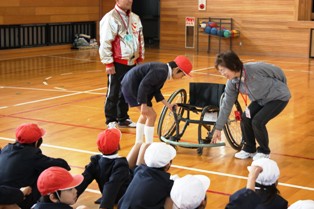 競技用の車いすを見せてもらいました。普通のとはだいぶん違います。