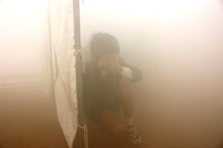 ほとんど前が見えません。煙の怖さを体験できてよかったです。