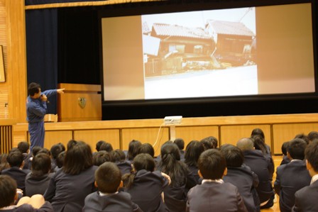 地震や津波の災害のすごさをビデオで見ました。速く避難することが命を守ることだとよく分かりました。